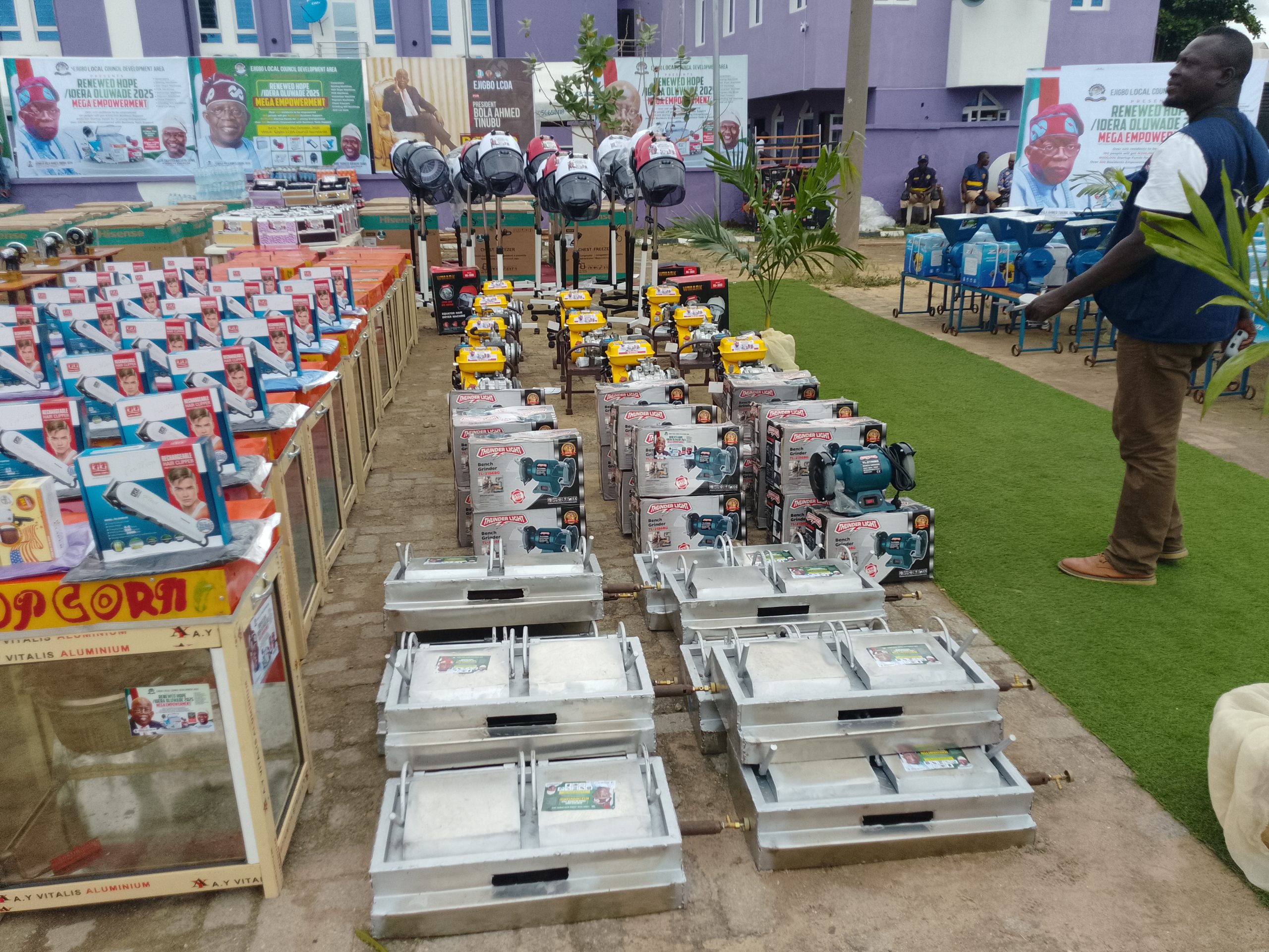 According to him the initiative is designed to cushion the impact of the fuel subsidy removal by the Federal Government on residents as over 400 residents across the six political wards would receive business tools and enterprise support,300 beneficiaries will be provided with chest freezers, generating sets, popcorn machines, grinding machines, hairdressing dryers, sewing machines,POS machines, Vulcanizing machines, barbing clippers,oven,Nikon cameras,cobbler machines,sharwama and grilling equipment all designed to support specific trades and enhance income generation.