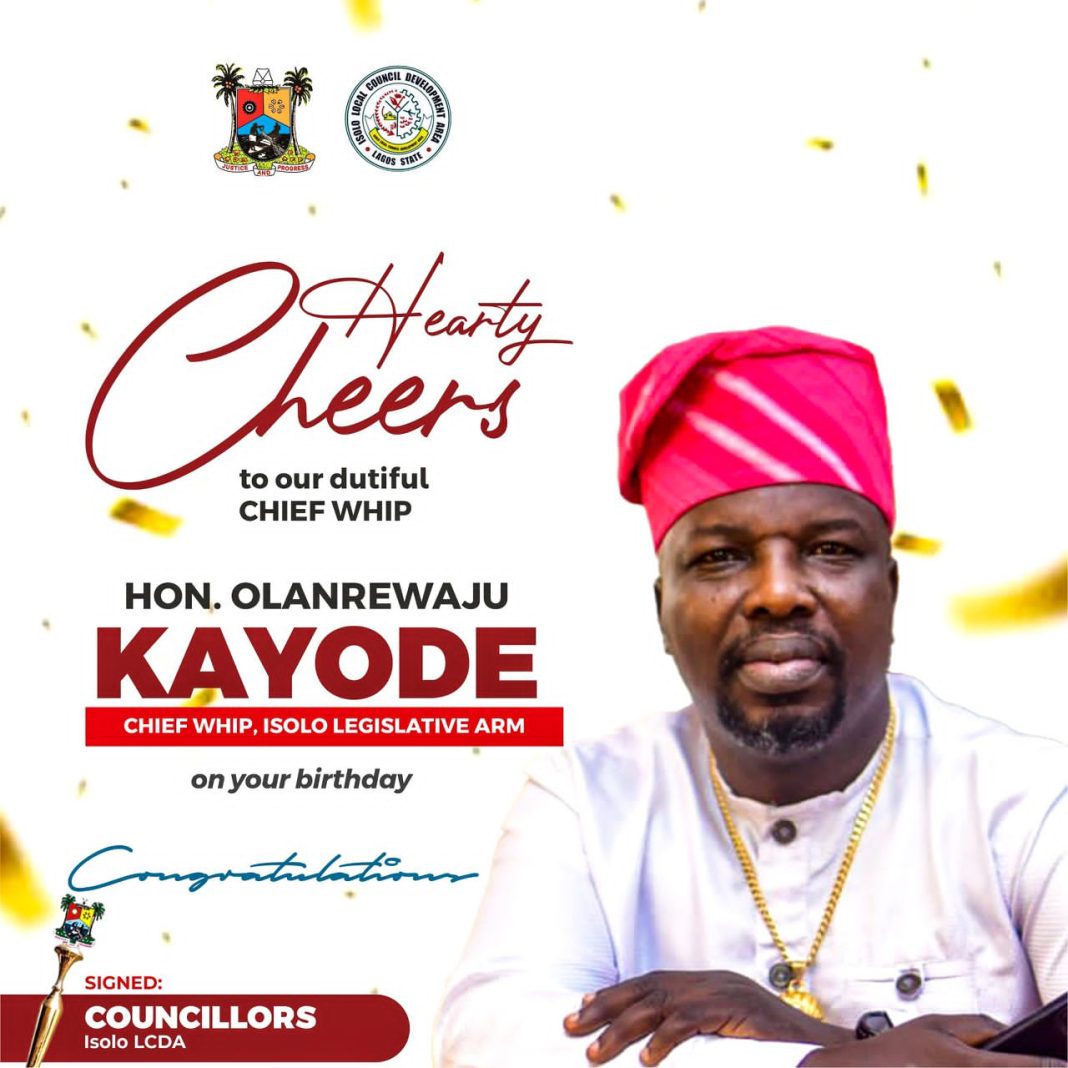 The 5th Legislative Council of Isolo LCDA, under the leadership of Hon. Akeem Adeyemi Ayoola Alarape, has celebrated the birthday of its Chief Whip, Hon. Olanrewaju Kayode.
