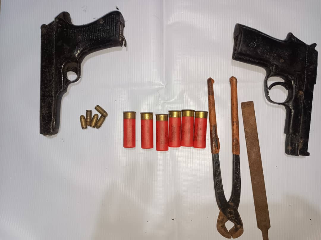 ……..Recovers two suspected stolen vehicles,two Beretta pistol,four pump action guns,three double barrel guns and one locally made pistol .