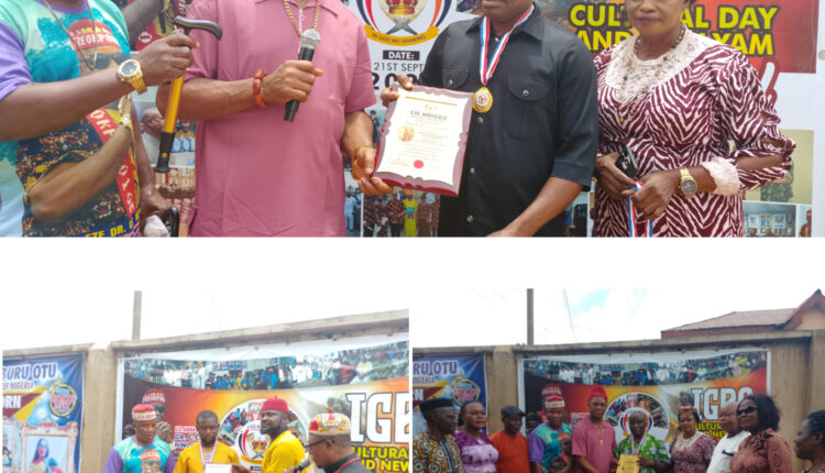 Investigator news gathered that awards were presented to HRH Ambassador Sir Godwin Njubigbo, J.P,Eze Ndigbo of Mainland who missed the official presentation at the just-concluded Iriji festival.