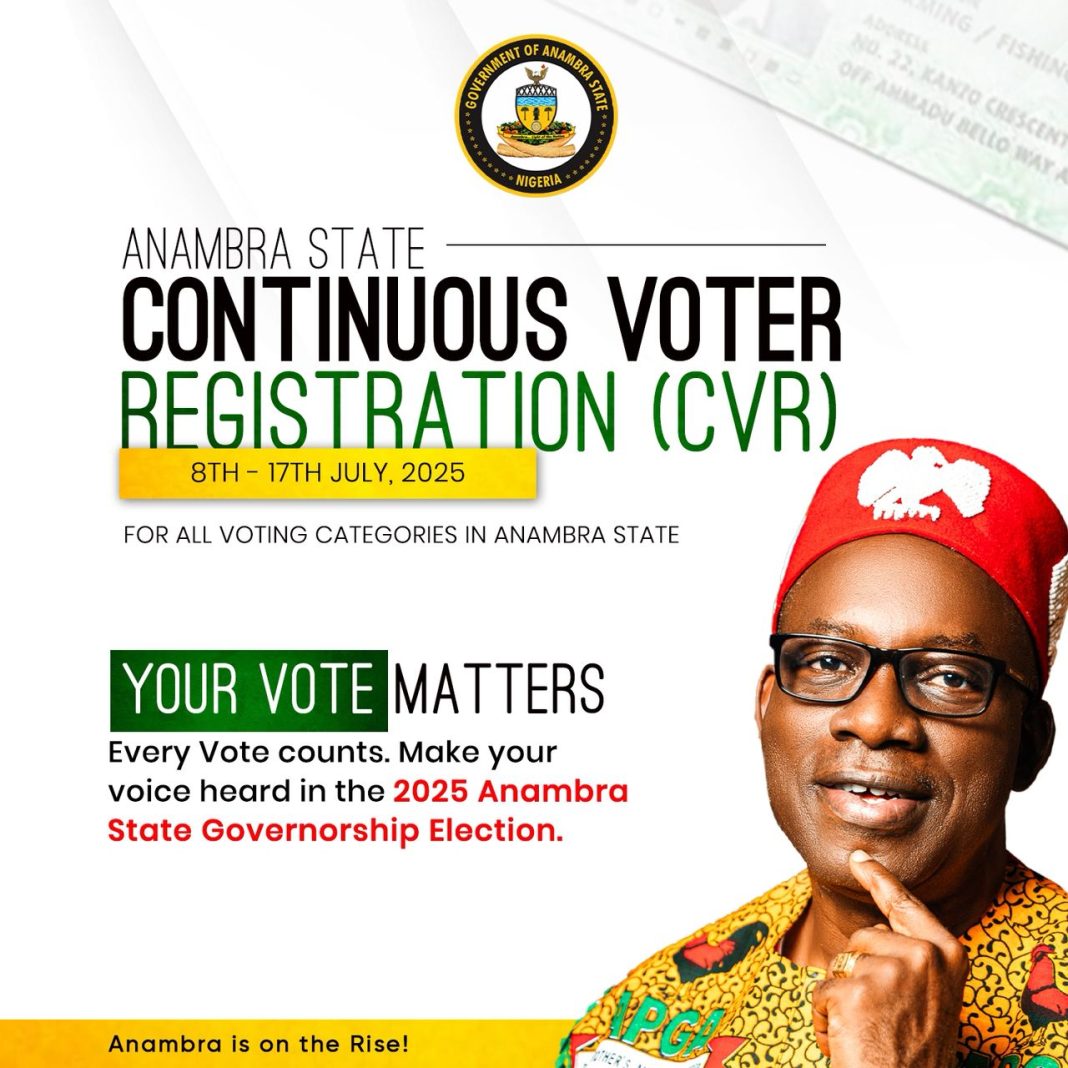 Which is why the Independent National Electoral Commission (INEC) has opened a critical window for the Continuous Voter Registration (CVR) in Anambra State, running from July 8 to July 17, 2025, in preparation for the November 8, 2025 Governorship Election. This comes as a golden opportunity for all eligible citizens and residents of Anambra State to take action, register, and ensure their voices are heard in shaping the future of our beloved state.