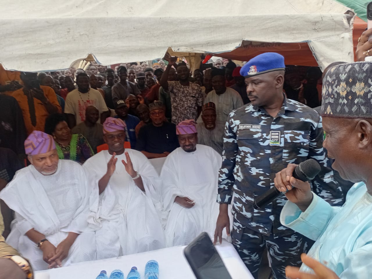 Following the meeting, Alhaji Shehu Usman led the distinguished senators to the Mile 12 International Market. The arrival was met with a mammoth crowd, where enthusiastic residents and traders welcomed the leaders with cheers and applause.