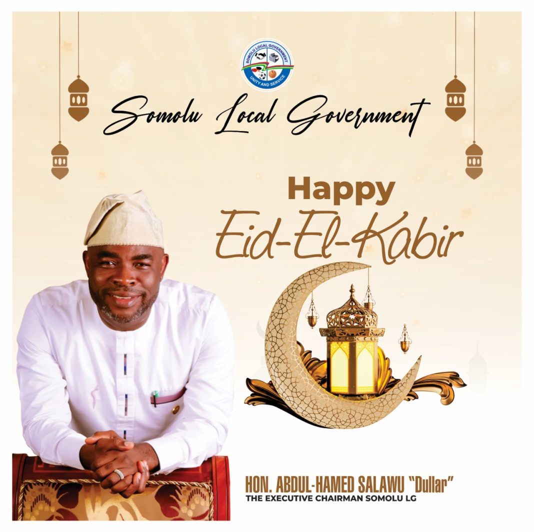 The Executive Chairman of Somolu Local Government,Hon Abdul Hamed Salawu ‘Dullar’ has described the Eid-Al-Adha celebration as a reflection of patience, perseverance and faith which stands as a powerful symbol of submission, patience, and unshakable faith in Allah.