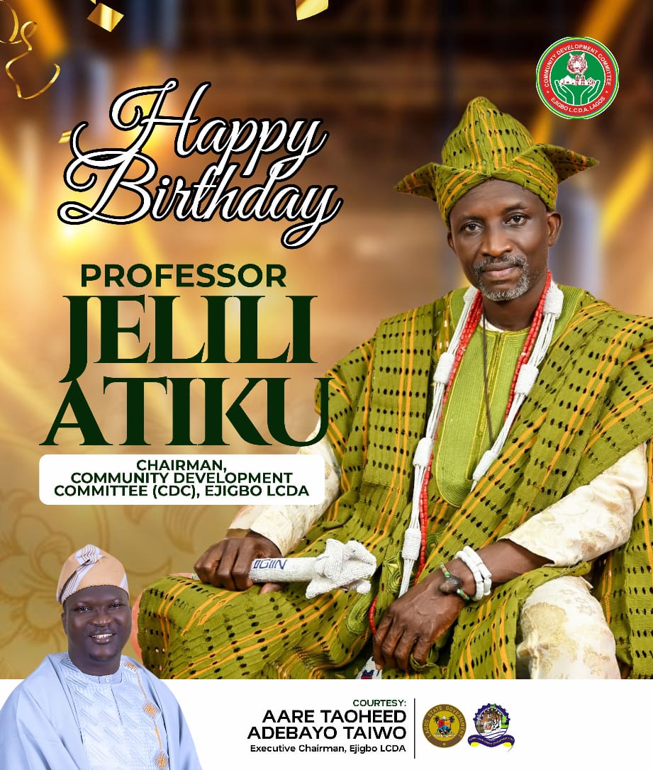 The Chairman of Ejigbo Local Council Development Area, Aare Tahoeed Adebayo Taiwo,has warmly celebrated Professor Jelili Atiku,Chairman Community Development Committee on his birthday.