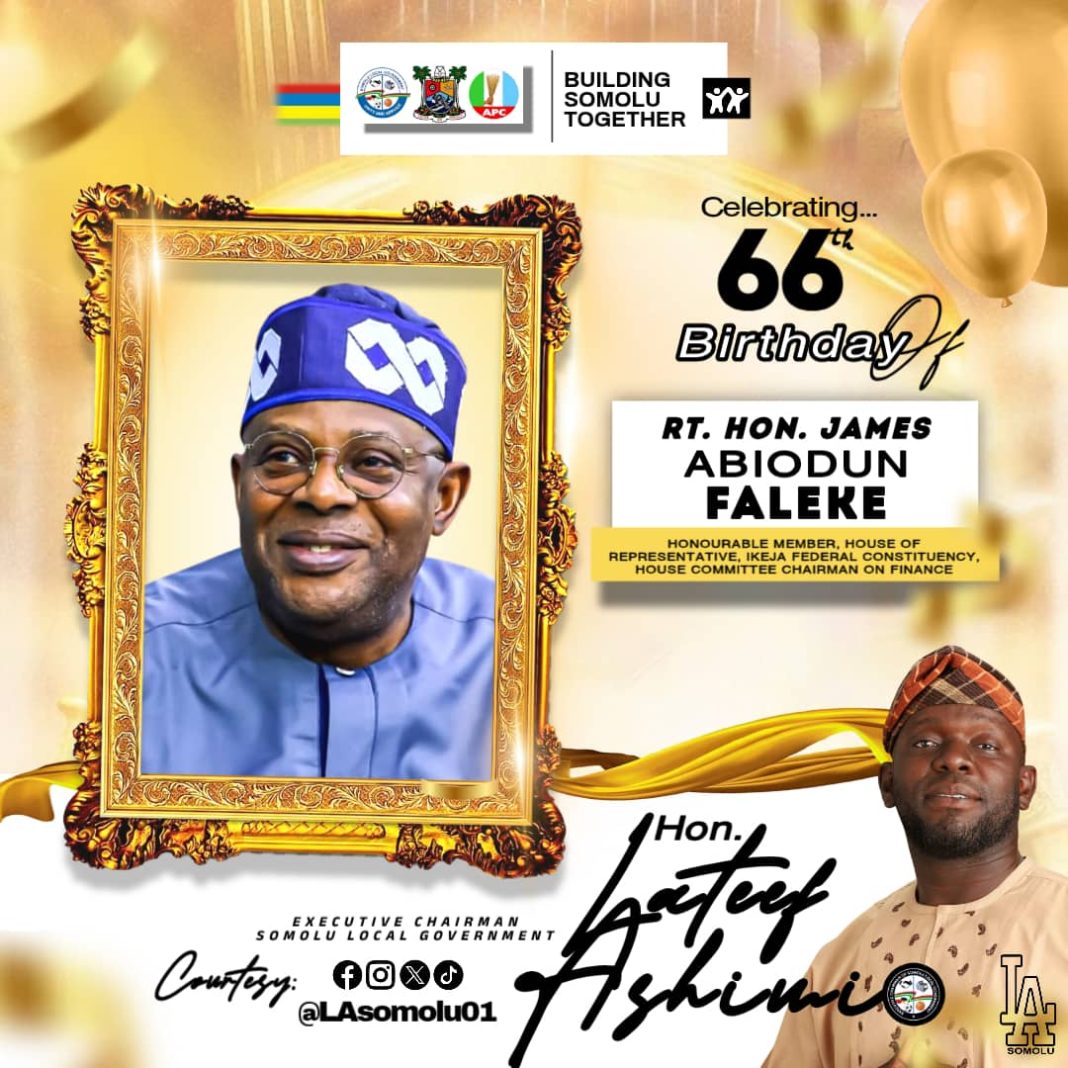 The Executive Chairman of Somolu Local Government, Hon. Lateef Ashimi, has extended warm birthday wishes to Rt. Hon. James Abiodun Faleke, Honourable Member representing Ikeja Federal Constituency and Chairman of the House Committee on Finance