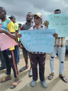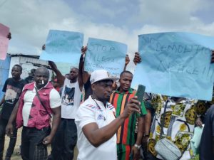 The community who took to the streets to seek government intervention in a peaceful protest stated that the land grabbers under the disguise of New Festac Development Property,FHA perpetrate their acts with the use of force carried out by the Nigerian Police Task Force to shoot and harass people.