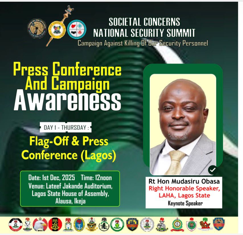 The Lagos State House of Assembly is set to host the flag-off ceremony of the Campaign Against Killing of Security Personnel, marking the official commencement of the 2025 National Security Summit.