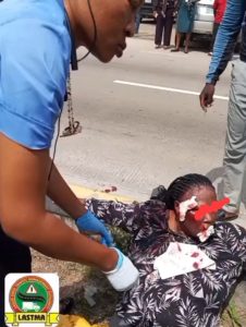 The victims, a female motorist and her male passenger, are receiving medical care at the Lagos State Accident and Emergency Centre.