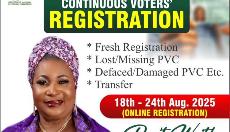 The Women Leader of the All Progressives Congress (APC) in Isolo LCDA Chapter, Alhaja Salawat Aregbe-Olusesi,has encouraged residents to take advantage of the ongoing Continuous Voters’ Registration Exercise to obtain their Permanent Voter’s Card (PVC).
