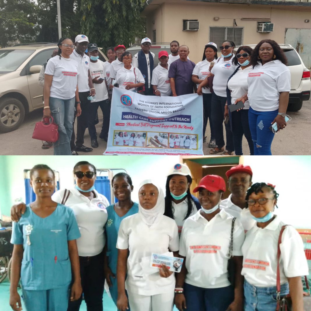 A non-profit organisation,the Bigways International Women of Faith Foundation in conjunction with the Eastern Union, Lagos Branch in furtherance to its vision to provide humanitarian assistance to alleviate the sufferings amongst women and children, visited the Lagos University Teaching Hospital (LUTH), Idi Araba, Lagos on Saturday 26, April 2025,to provide emotional and financial support to indigent parents of children and adults battling with different ailments at the hospital.