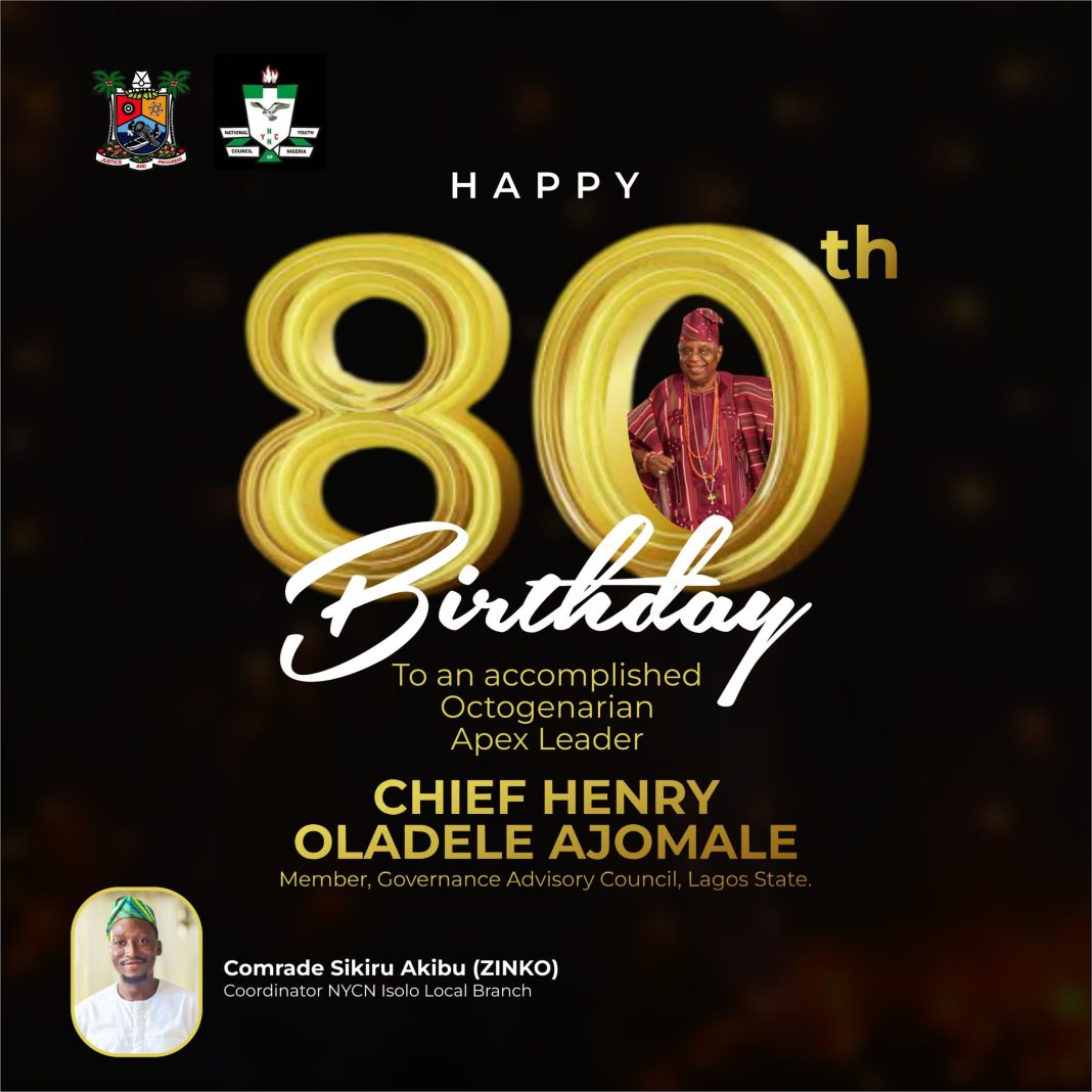 The leadership of National Youth Council of Nigeria, Isolo Local Branch has hailed Otunba Henry Ajomale as he uniquely celebrated his 80th Birthday with palliative distribution to over 2,000 families in Isolo LCDA.